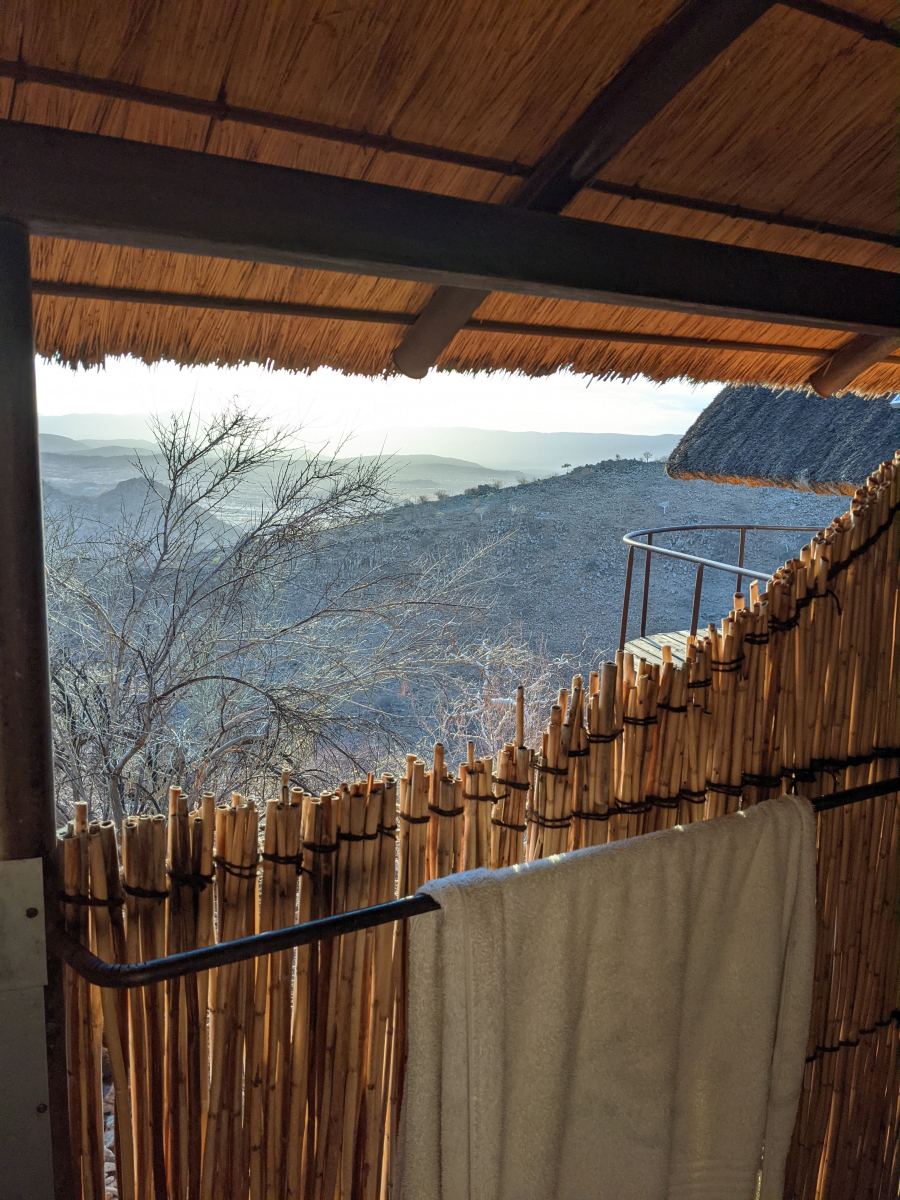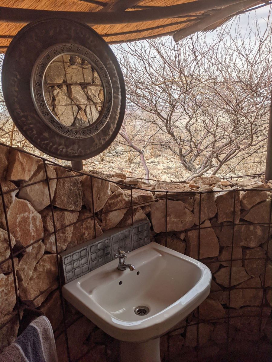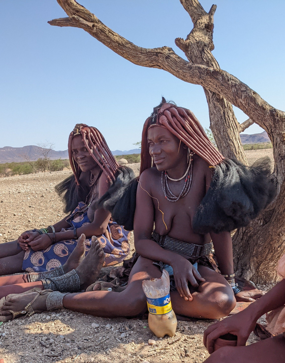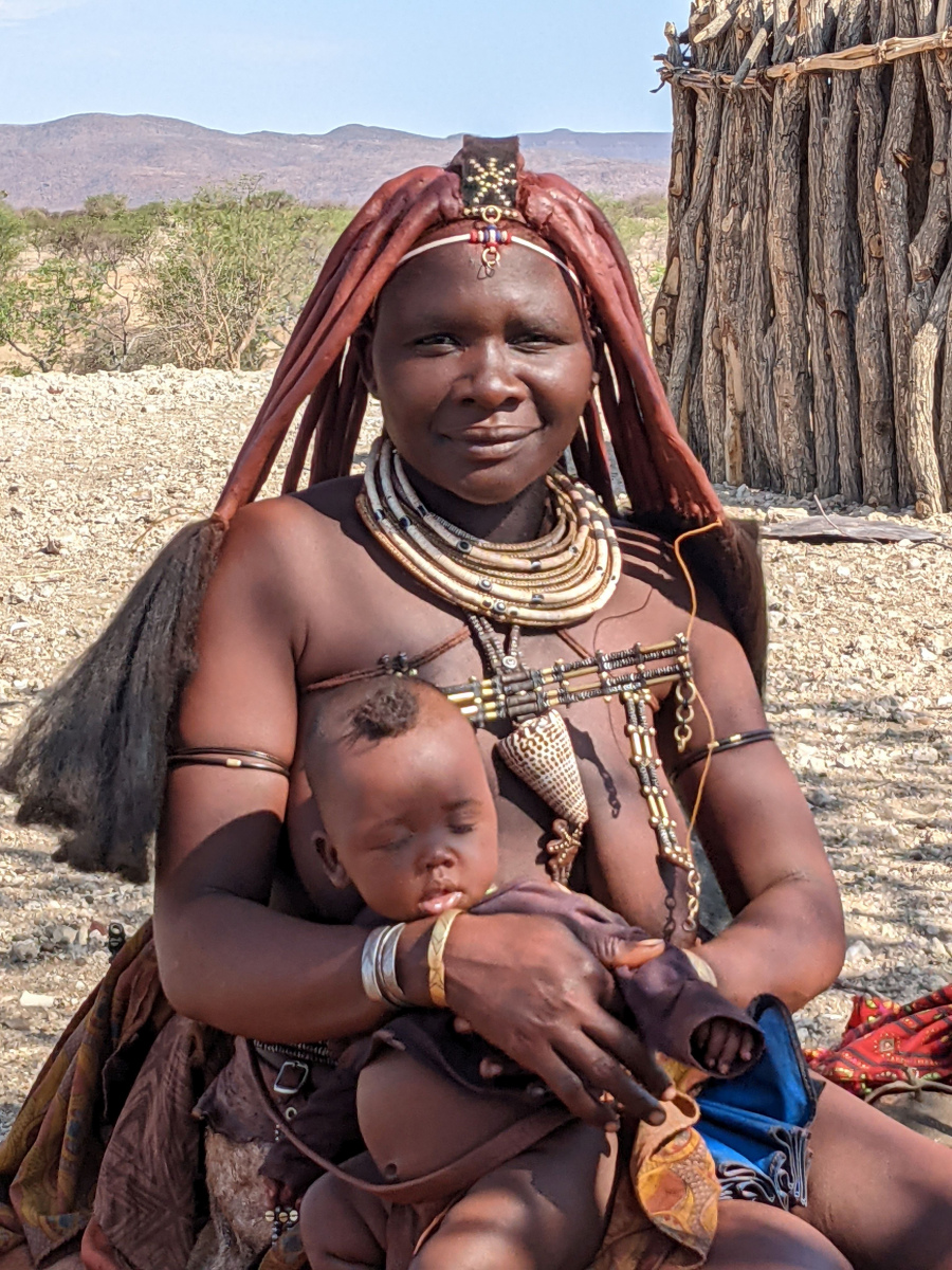 Die einzigen Menschen, die hier oben im Norden leben sind die Himba. Das wichtigste Gut das sie haben sind ihre Rinder. Mit denen ziehen sie den spärlichen Weideflächen hinterher. Sie gehören zu den Herero, unterscheiden sich aber kulturell erheblich. Sie sprechen aber die gleiche Sprache. Das Ziel unserer Reise und ihr Höhepunkt war das Etambura-Camp (zwischen White Drum und Marple Camp …. für die, die sich im Kaokoveld auskennen 😉 ), das erste und einzige Camp/Lodge in Namibia, das von der Himba geleitet und organisiert ist. Wir hatten das große Glück mit der Managerin von Etambura (selbst eine Himba) ein paar Himba-Frauen in ihrem Dorf besuchen zu können.