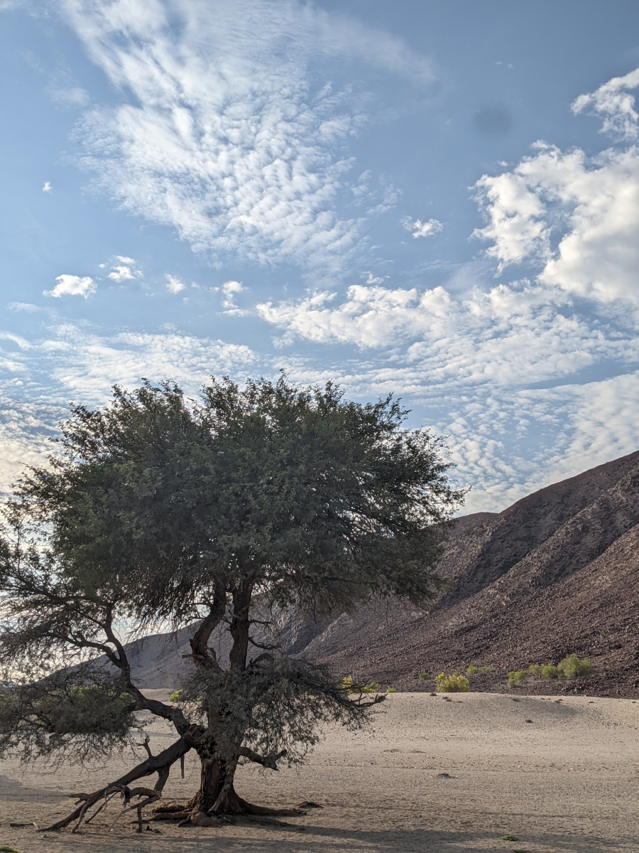 Ja, das Kaokoveld macht süchtig. Es ist nicht nur für Autofahrer eine Herausforderung mit seinen steinig-felsigen Wegen (von Strassen kann man hier in der nordwestlichsten Ecke von Namibia nicht mehr sprechen), sondern für alle, die die Einsamkeit und Weite lieben ein unbedingtes MUSS. Hier oben ist man allein. Begegnen einem auch im übrigen Namibia nur wenige Autos, so ist es doch hier im „Outback“ Namibias eher selten, dass man Menschen oder Autos zu Gesicht bekommt. Man ist also völlig auf sich allein gestellt – auch das macht den Reiz des Fahrens hier aus.