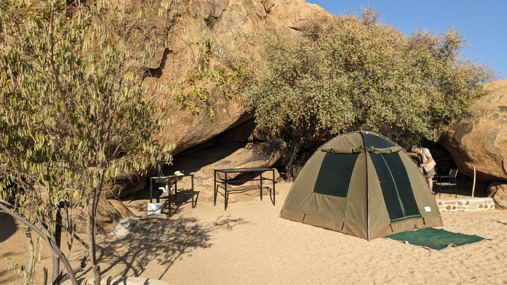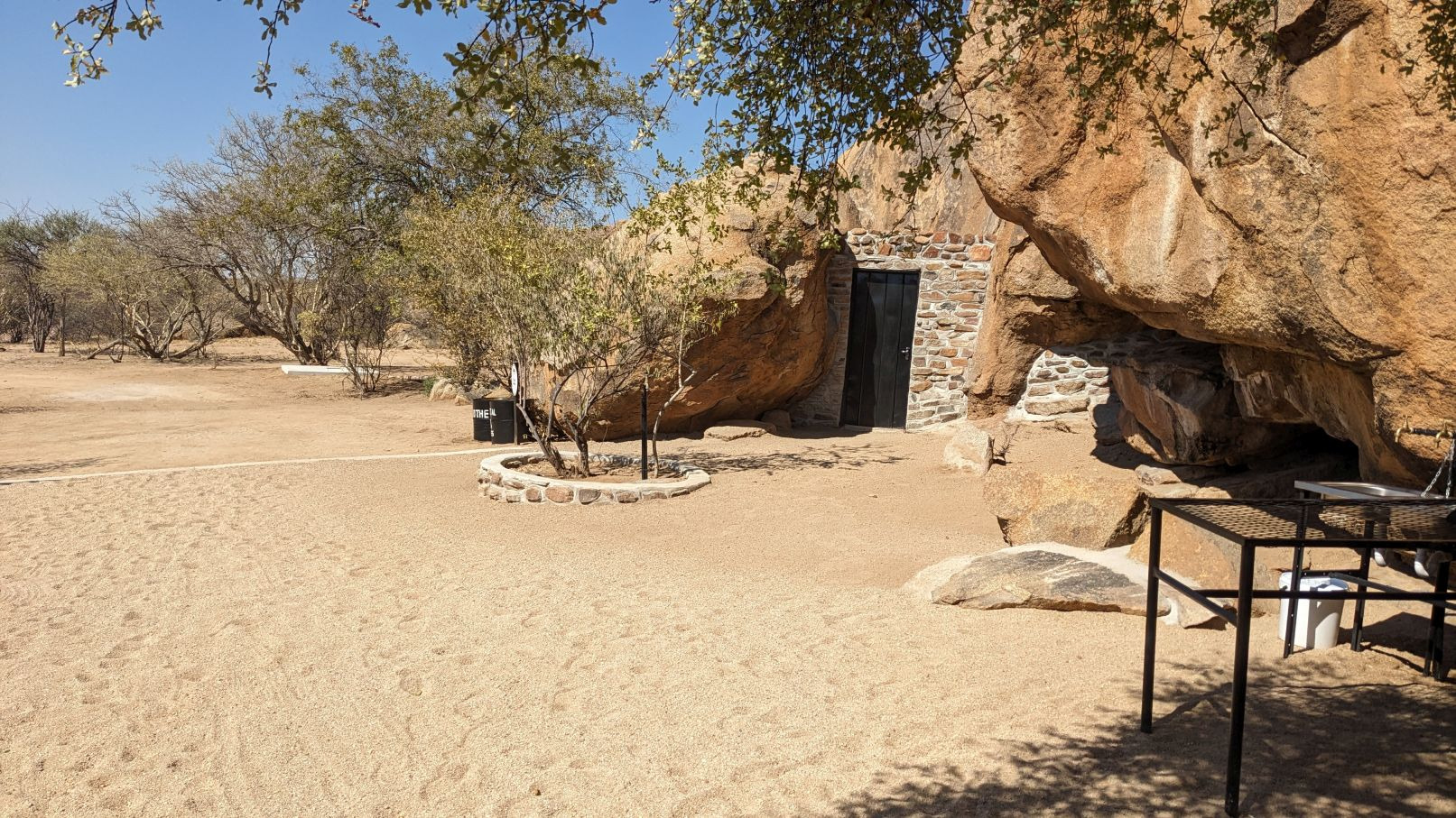Die größte Überraschung kam zum Schluß. Von allen Seiten wurde uns gesagt, wir müßten unbedingt die Farm Erongo Rocks besuchen. Dort bekamen wir einen irre tollen Campingplatz, der mit ganz viel Liebe angelegt wurde :
